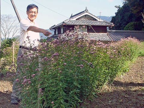 今年3月、景観形成や生態系保全も兼ね、糸井夫妻の好意で株分けしてもらったフジバカマを、地域内にある日光寺の参道横の農地(約100平方メートル)に植栽。以降、会員で水やりや草刈りに取り組み、世話を続けた。