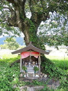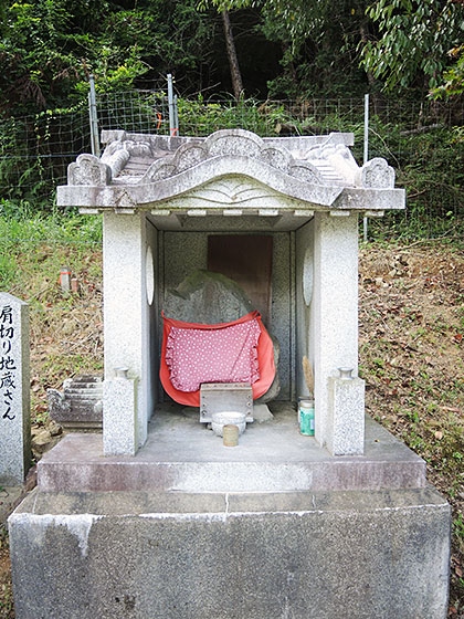 同市市島町美和にはほかにも丹波攻めの悲話を今に伝えるものがある。「肩切(かたぎり)地蔵」だ。この地蔵の左肩が切り落とされたような形をしていることから「肩切地蔵」と呼ばれている。
