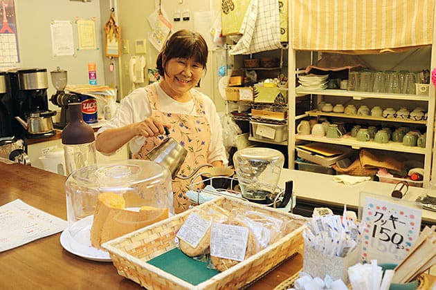篠山市民センター内にあるオープンカフェ。店長の山中清子さんが穏やかな笑顔で迎えてくれる。セルフサービス。