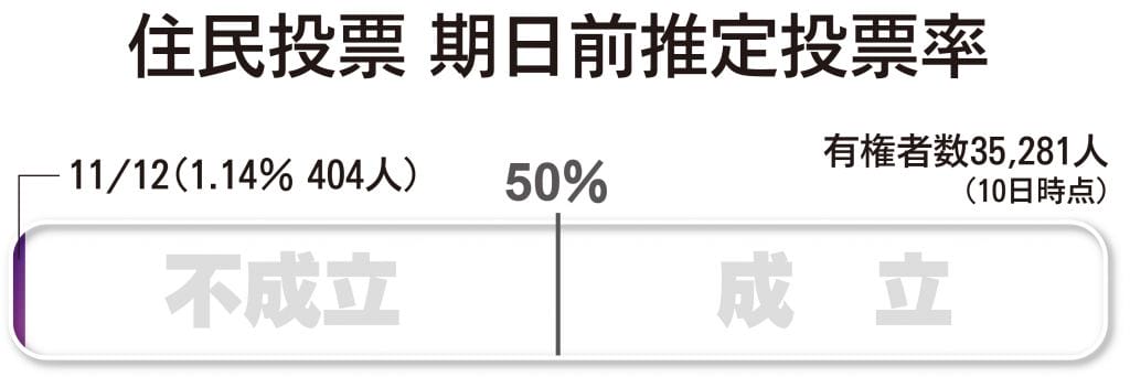 期日前投票は12日時点で404人が投票。10日時点の有権者数3万5281人で、現在、推定投票率は1・14%。