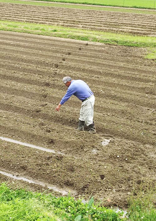 幅17センチほどある熊の足跡が見つかった畑は、民家の南東50メートルほど。近隣住民たちは、「シカやテンら野生動物の通り道になっているが、熊まで行き来しているなんて」と驚いていた。