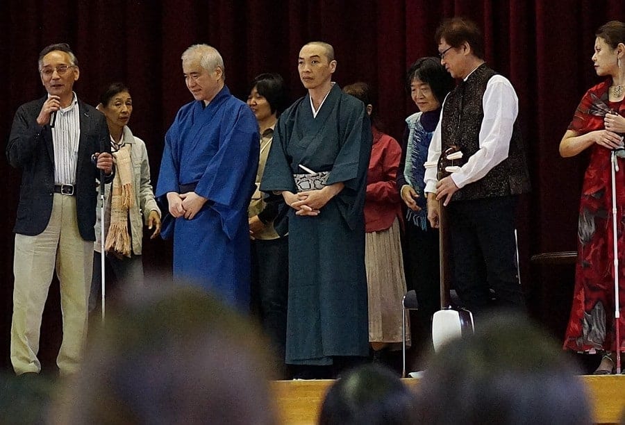 イベントでは、酒井さんは司会進行を担当。出演者はすべて視覚障がい者で、日本福祉放送のカラオケ大会で優勝経験のある松本千鶴子さん(大阪)が世界平和を願う、アグネスチャンの「ピースフルワールド」など3曲を熱唱。半丸亭壽近さん(兵庫)が、子どもに長い名前をつけてしまった落語「寿限無」に、アジアのさまざまな言語を取り入れた「アジア寿限無」など2席、半丸亭さく作さん(京都)が1席を演じた。濱田明展さん(神戸)は津軽三味線を4曲を披露した。