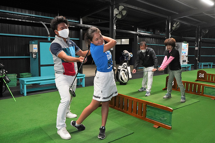 毎週火―金曜日午後6―10時には、日本プロゴルフ協会(PGA)所属のツアープロ・山田潤さん(29)とティーチングプロ・中村愛さん(46)によるグループレッスンが受けられる(1人1回2000円)。