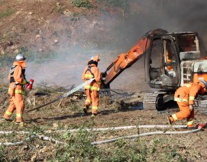 13日午後2時55分ごろ、兵庫県丹波篠山市の空き地で、ショベルカーが炎上する車両火災があった。約1時間半後に鎮火、けが人はなかった。