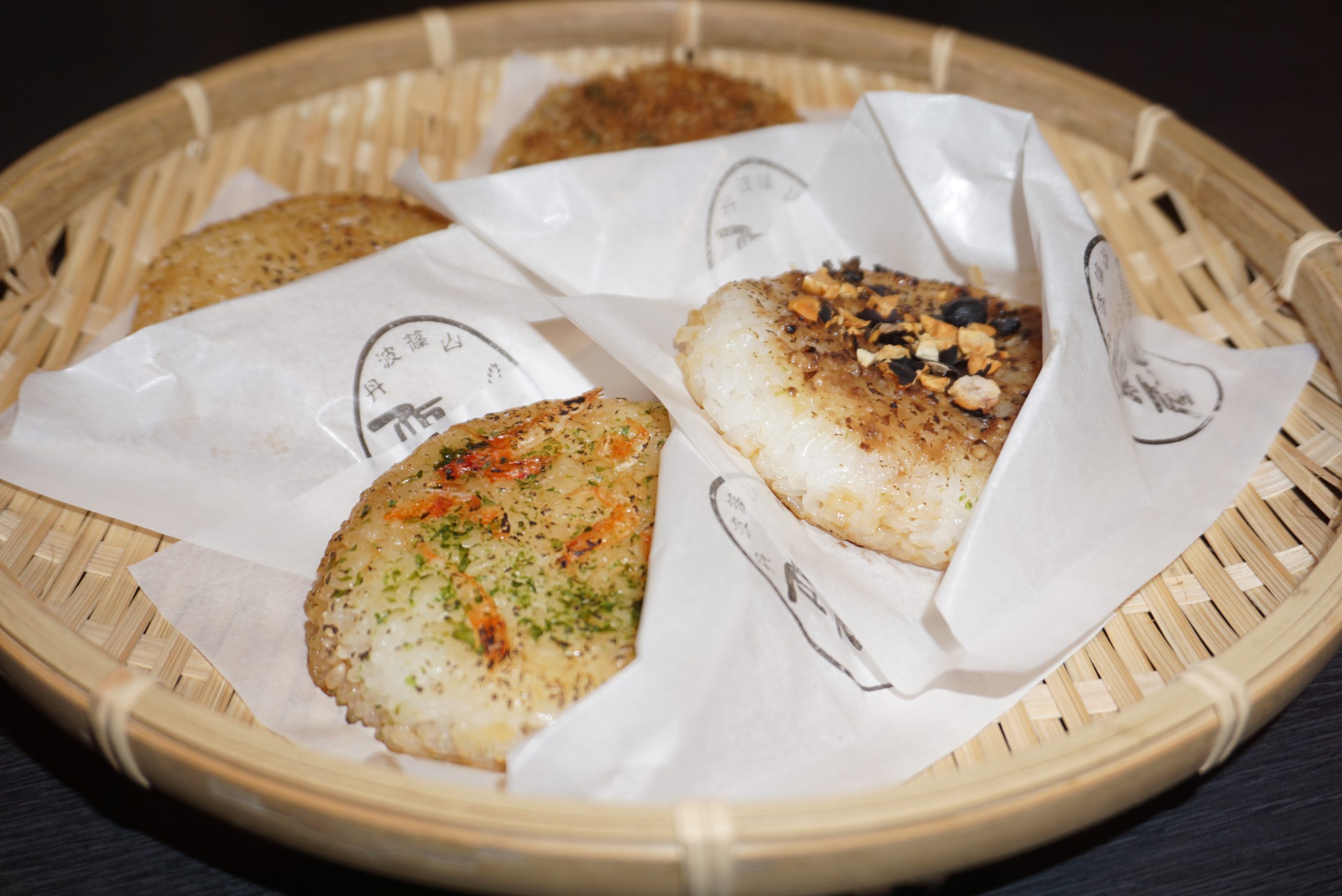 「厳選のお米でおやつ感覚の焼きおにぎりを」と6月5日に販売開始。丹波篠山の農家が愛情込めて作ったコシヒカリに老舗・田中醤油店(新荘)の醤油をかけて焼き上げ、直径およそ8センチ、厚さおよそ1センチの食べやすい円盤型に仕上げた。