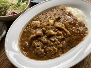 保険会社の事務所だったという建物の1階部分を店舗にする。牛すじやホルモン、バターチキン、豚バラなど8種類ほどのメニューを提供する。値段は690-1000円程度。淡路島産タマネギを炒めてペーストにし、独自に調合した特製スープ、10種類以上のスパイスと合わせ、老若男女が食べやすい味に仕上げる。中林さんは「カレーは、ご飯がおいしく食べられるスペシャルソース」と表現する。
