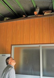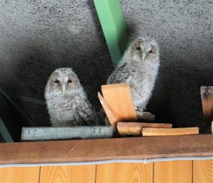 天井裏の資材置き場に巣を構えており、巣立ちが近づくと、人目につく場所に出てきてたたずんでいることが多く、そこで初めて営巣に気づくという。今年の”初顔合わせ”は、例年より10日ほど遅い23日だった。