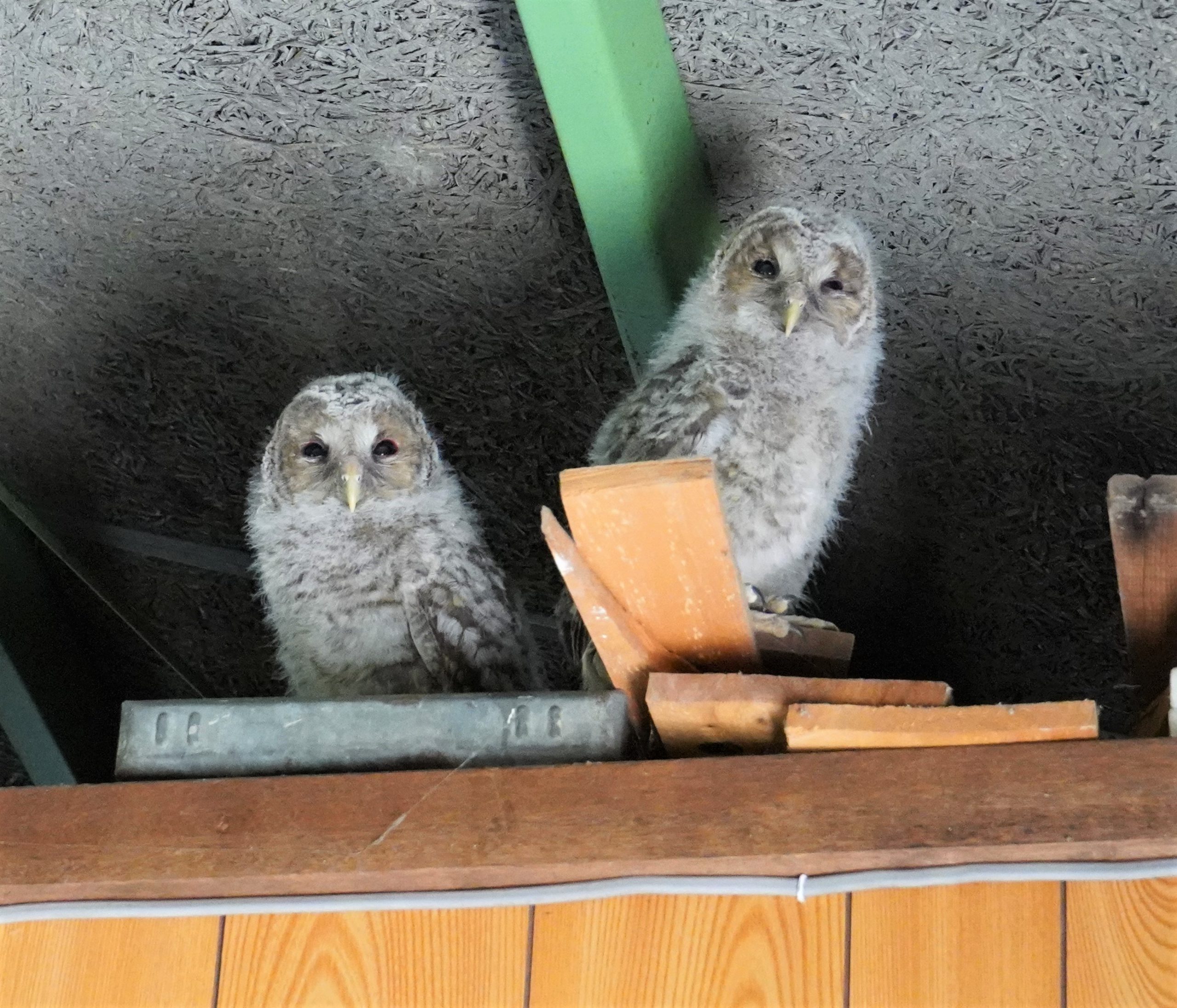 兵庫県丹波市氷上町の谷垣忠春さん(81)が所有する農業倉庫に毎年、フクロウが営巣しており、今年も2羽のひながすくすくと育っている。食事こそ”セルフ”だが、まるで「居候(いそうろう)」だ。