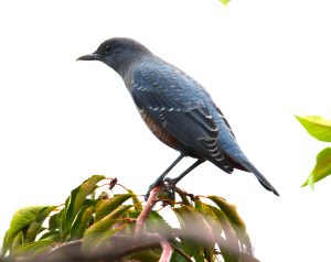 兵庫県丹波篠山市内で、木の枝に飛来したのは美しいダークブルーが特徴の”青い鳥”。ヒタキ科の「イソヒヨドリ」だ。