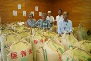 柏原地域を中心に、賛同した農家が家庭に保有していた古米を寄付したほか、収穫したばかりの新米も大量に届いた。また、非農家家庭からも、小さなポリ袋に入った白米が届けられたり、わざわざどこかで購入したと思われる「あきたこまち」と書かれた小袋が届いたりした。