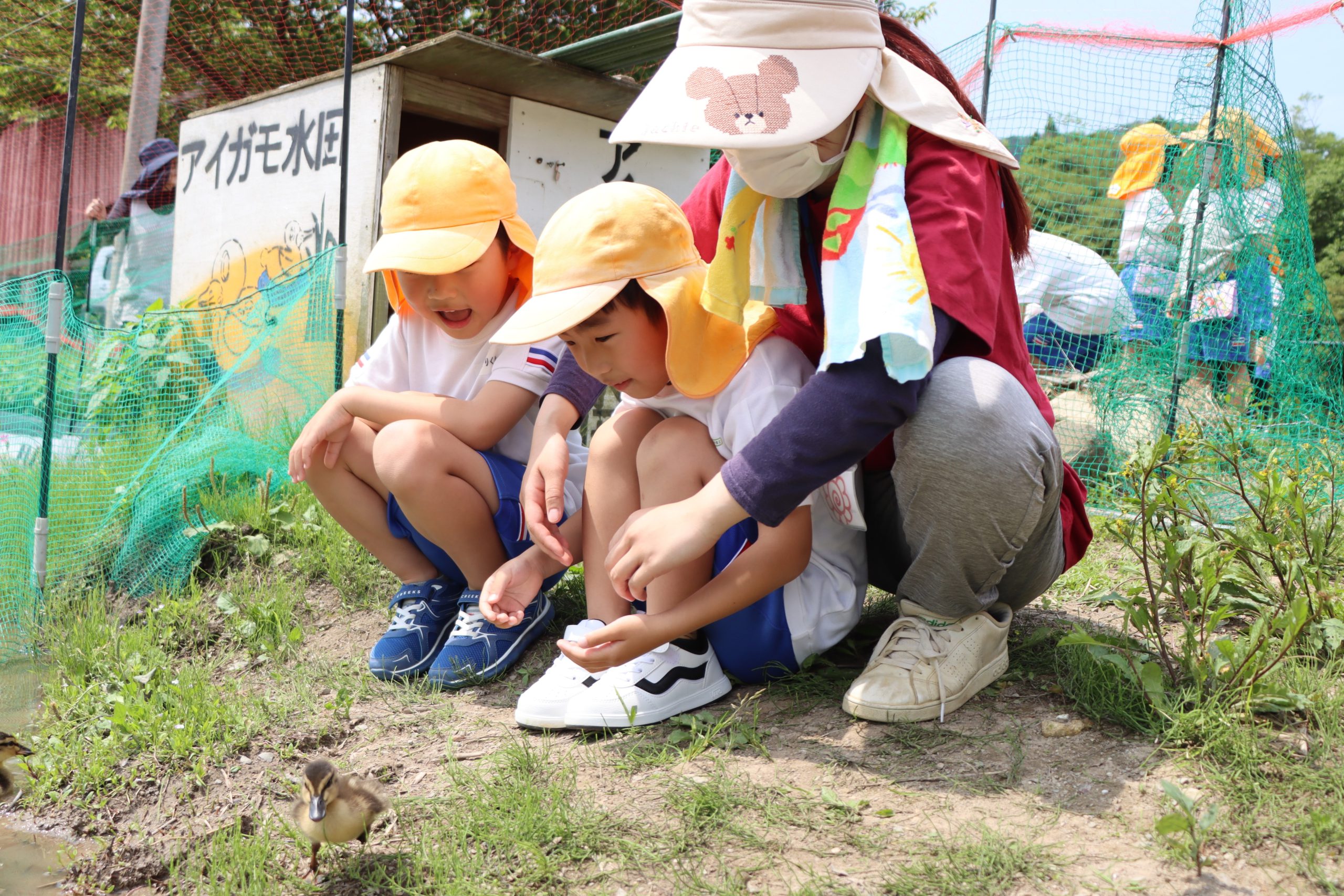 園児の男の子は「アイガモを触ったのは初めて。柔らかかった。泳いでいるところもかわいかった」とはにかんだ。