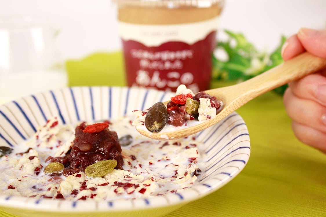 自家製つぶあん、シリアルに牛乳をかけて食べる「あんこのグラノーラ」