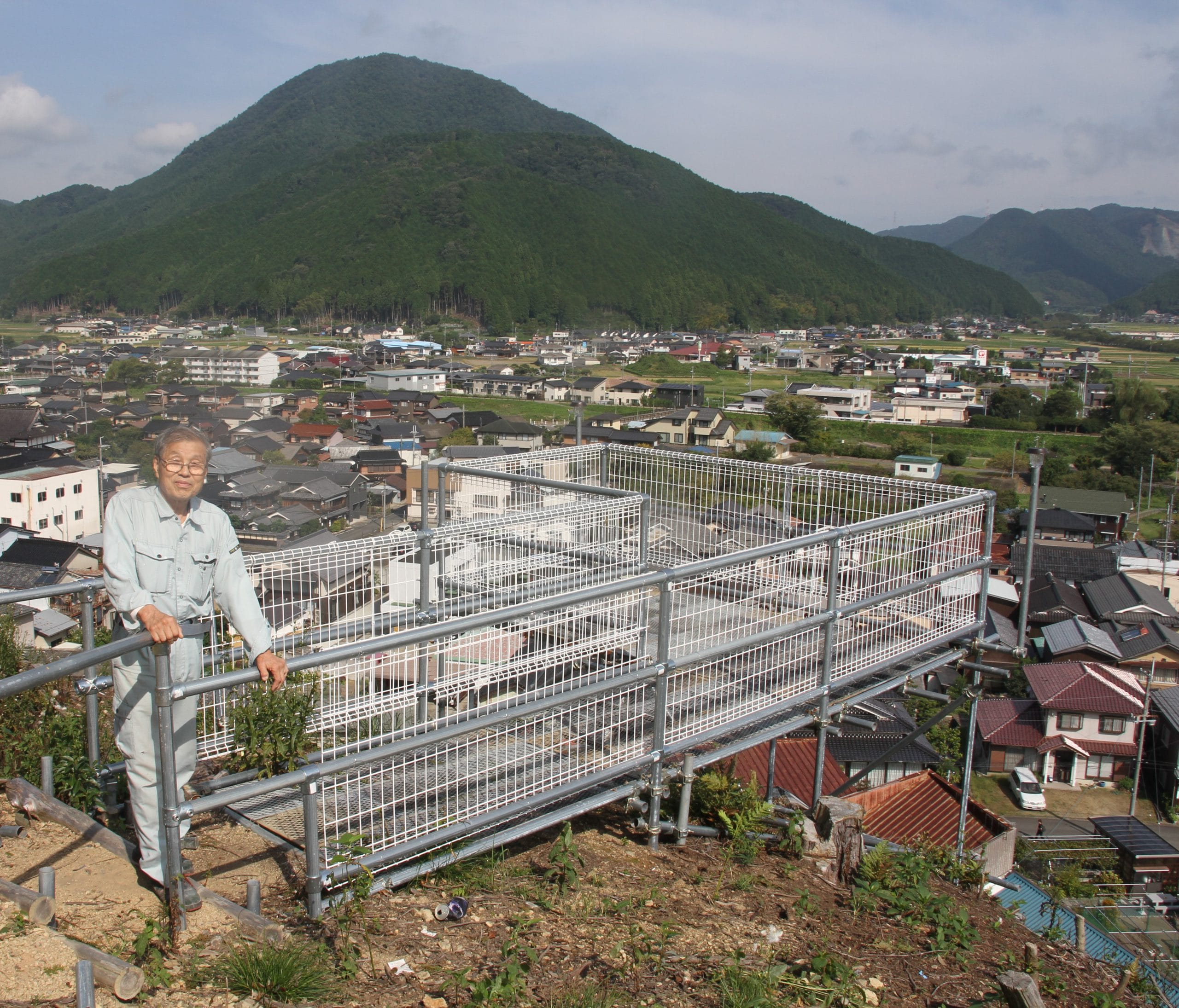まち一望の展望台 区有林に1人で施工 「午前中がよりきれい」