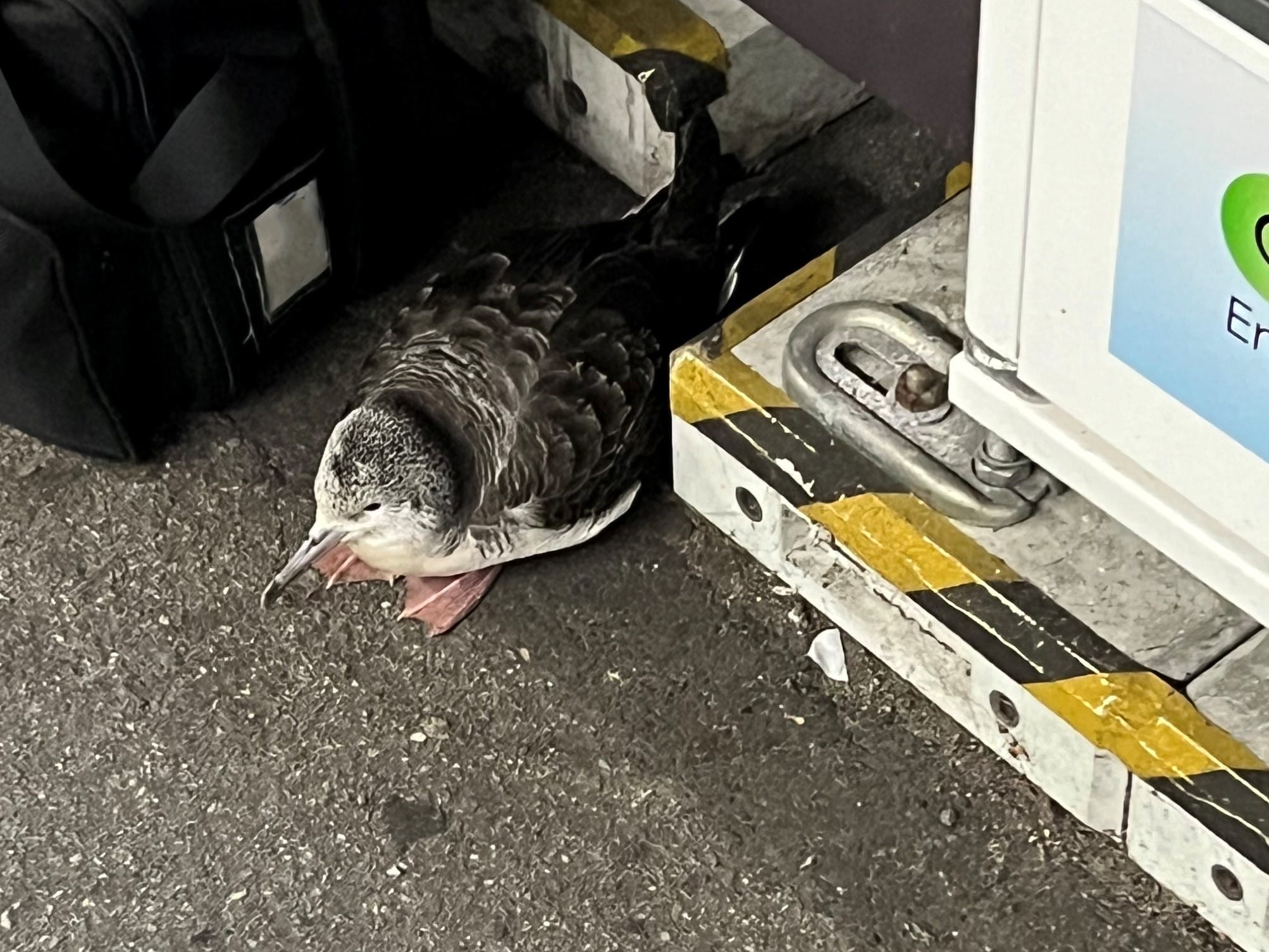 マスコット? ホームに「オオミズナギドリ」 姿消し、無事の出立願う