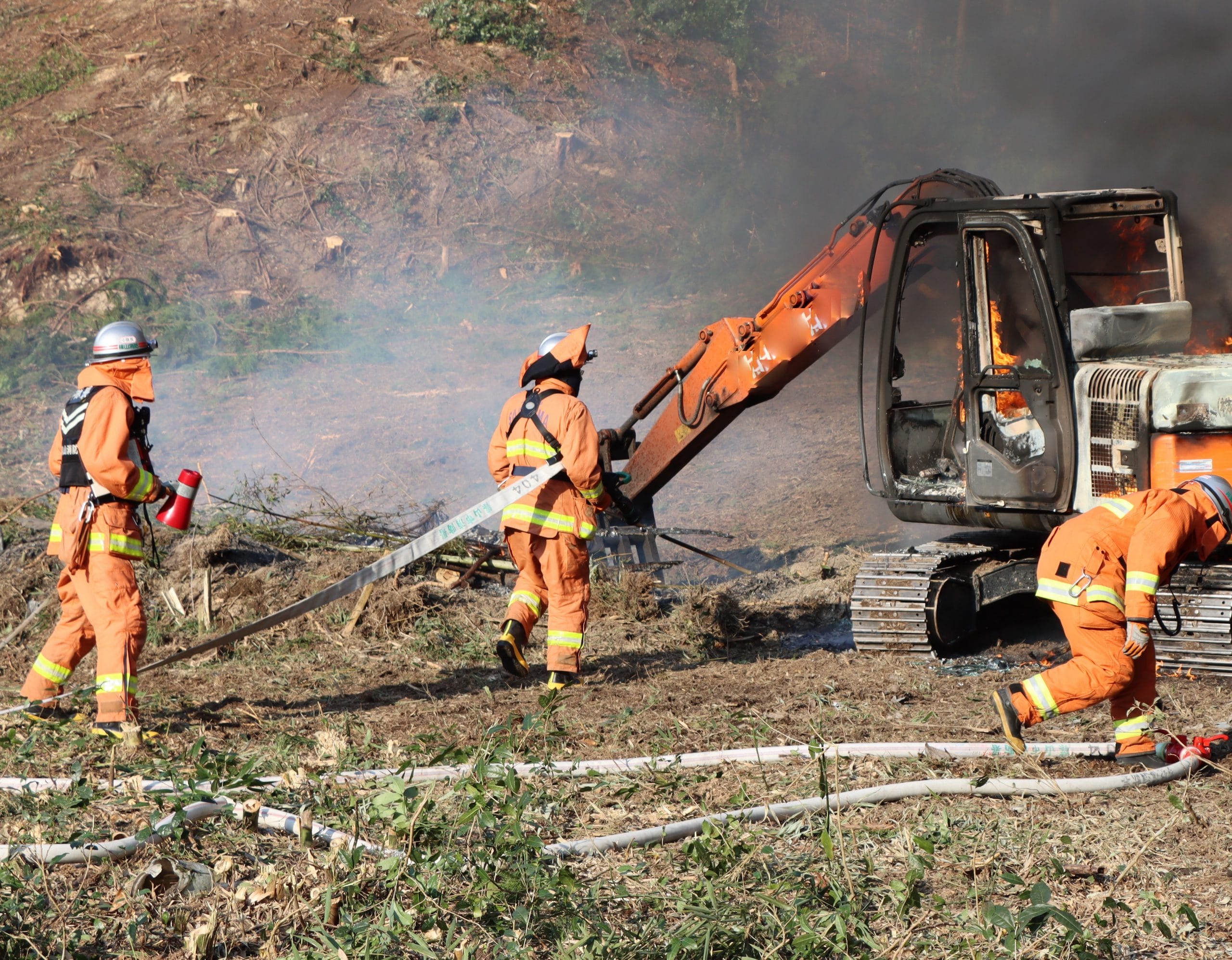 ショベルカー炎上 エンジン付近から出火 たき火が原因?