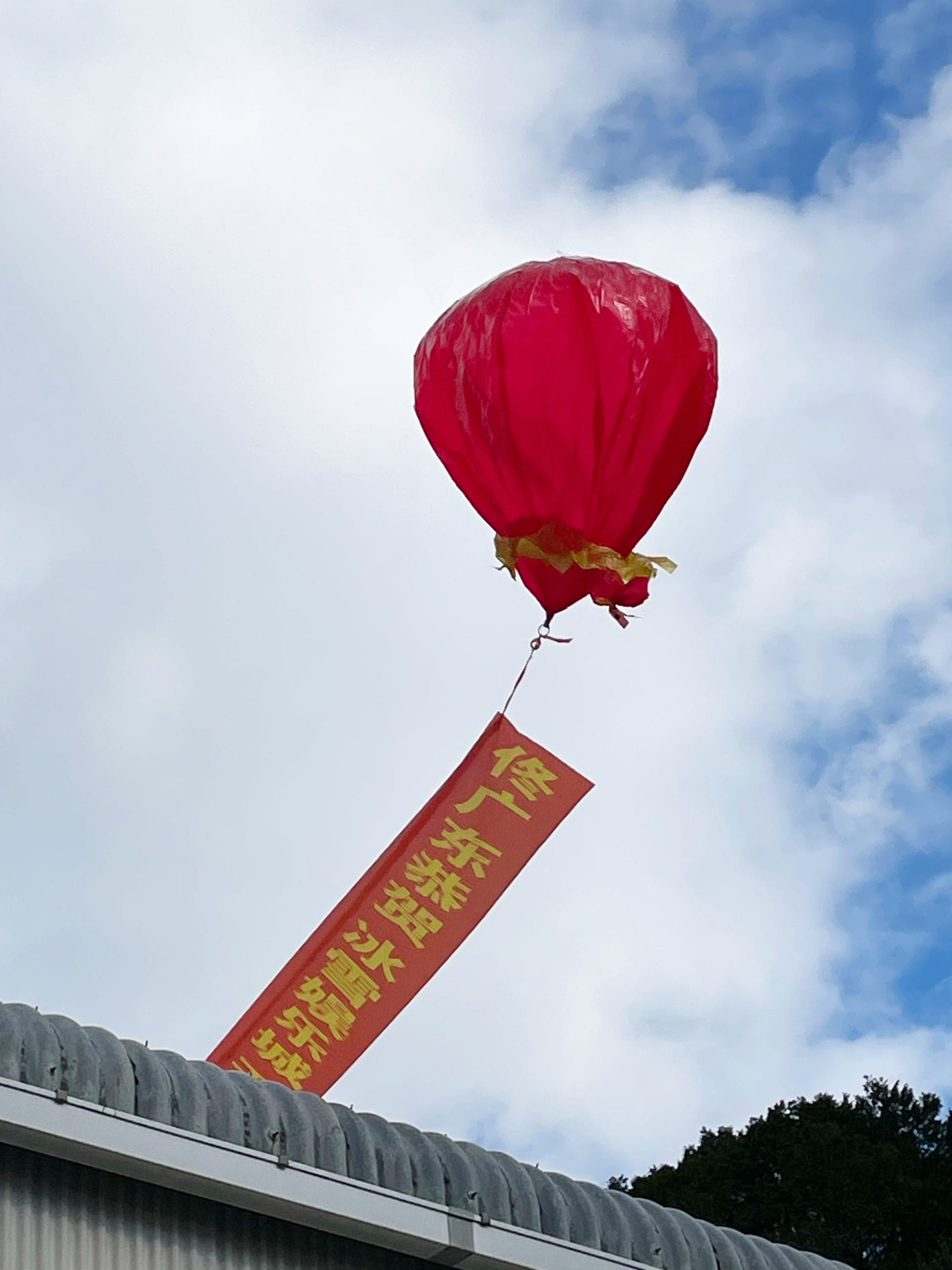 中国から?風船飛来 氷の娯楽施設開業祝いか 日本の「花輪」に相当